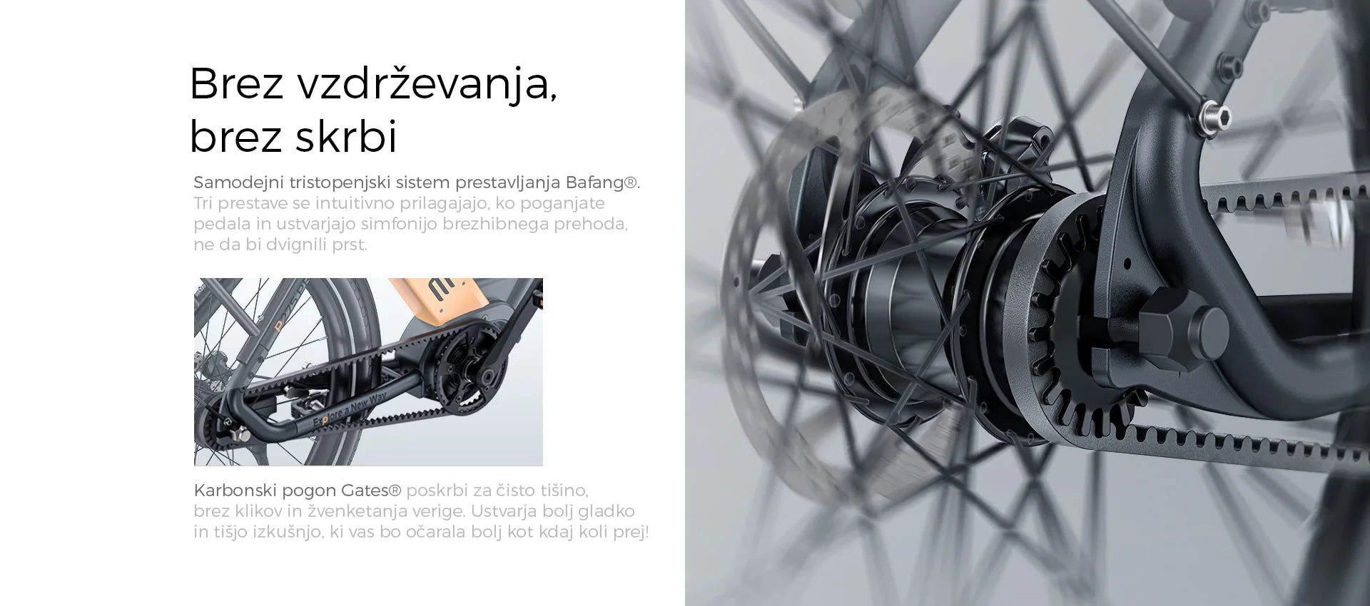 Carbon Belt: Izdelan iz karbonskih vlaken, ne rjavi in ne potrebuje mazanja. Je tišji, gladek in zahteva manj vzdrževanja.