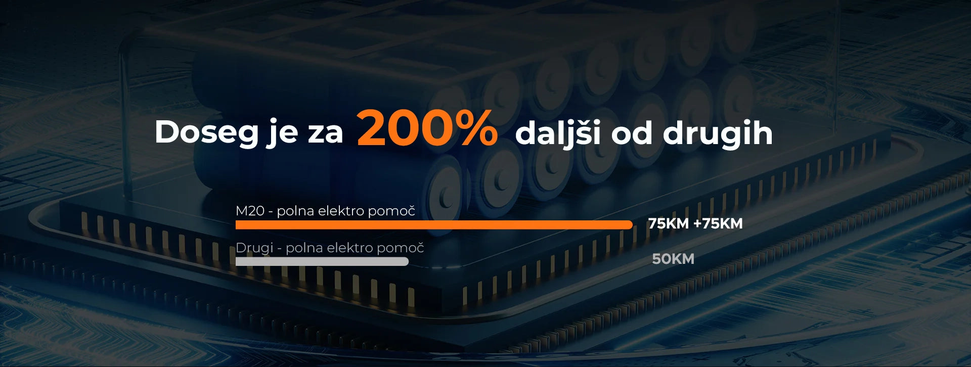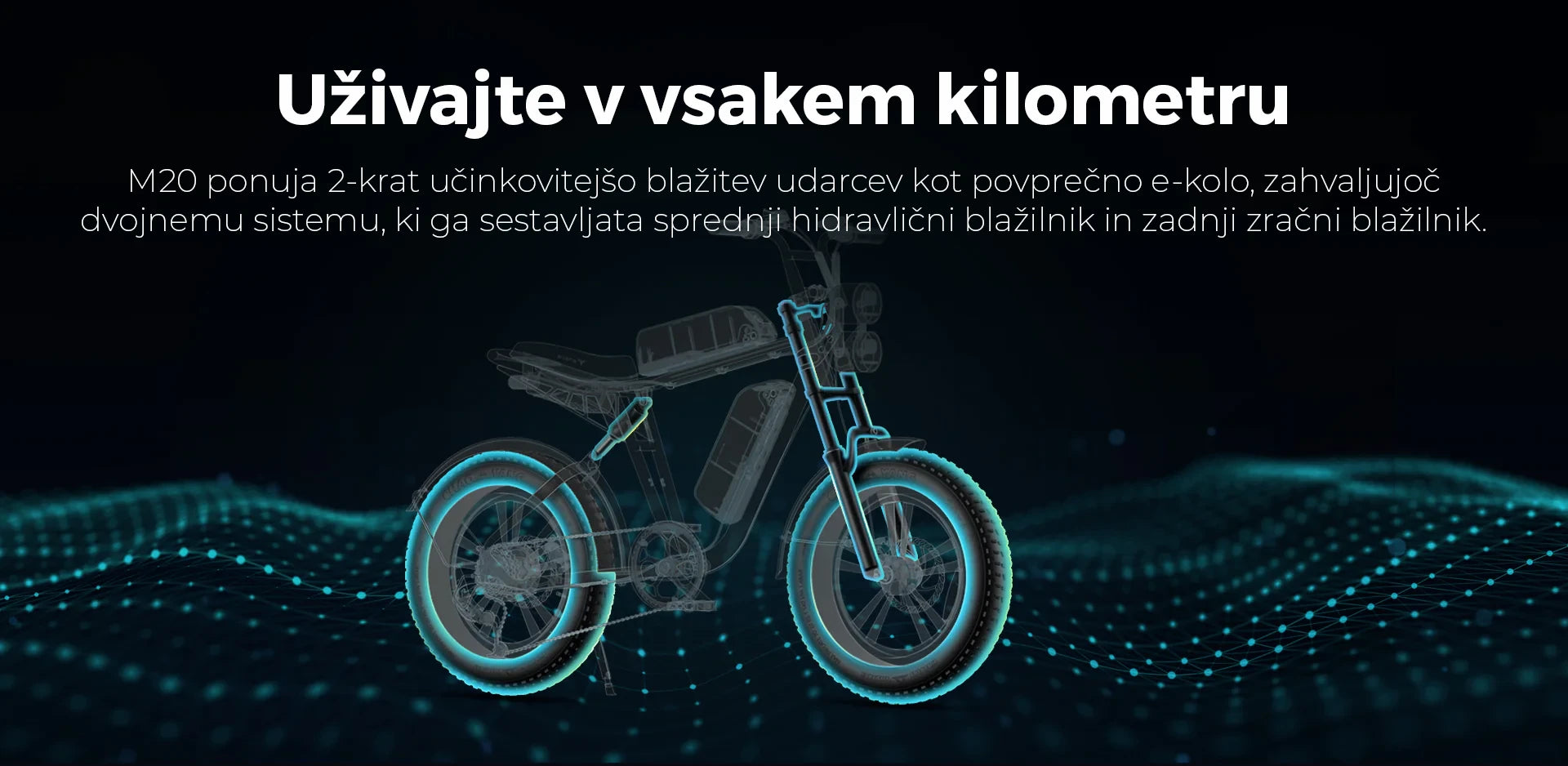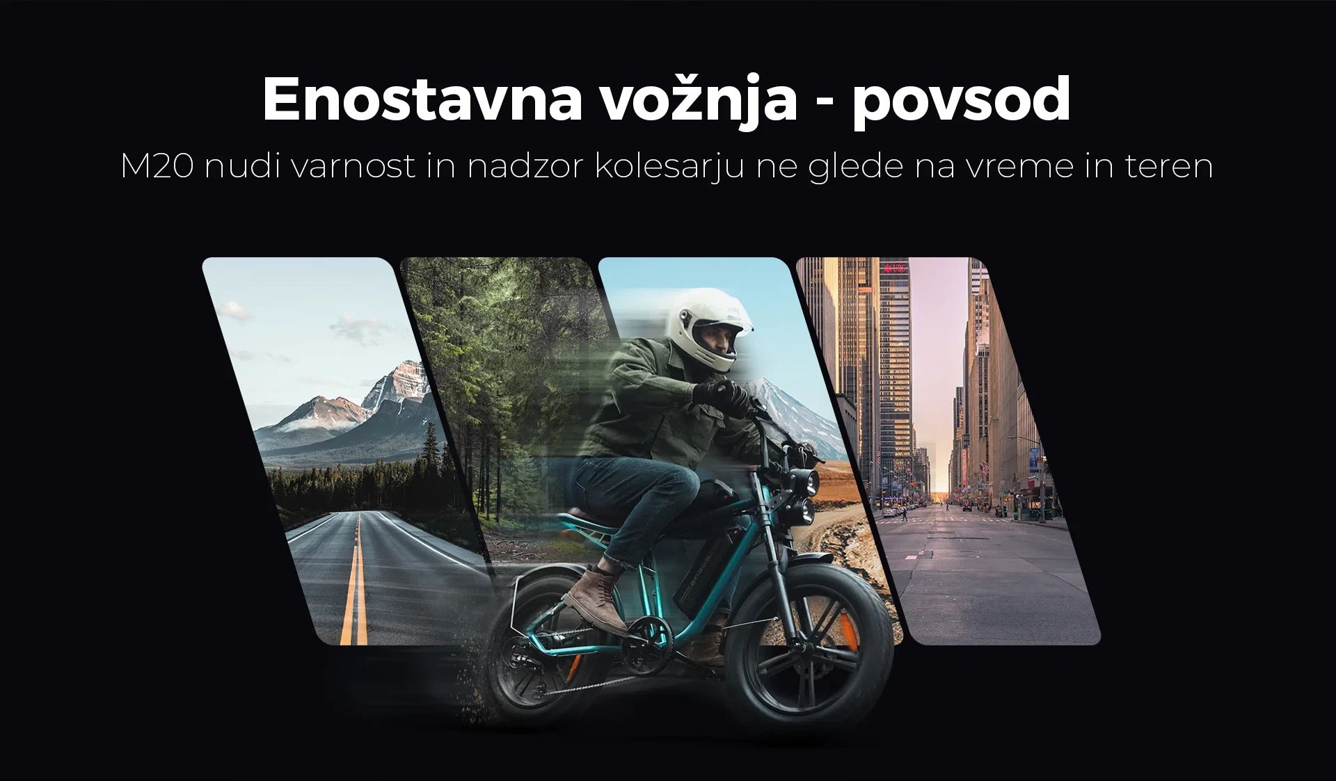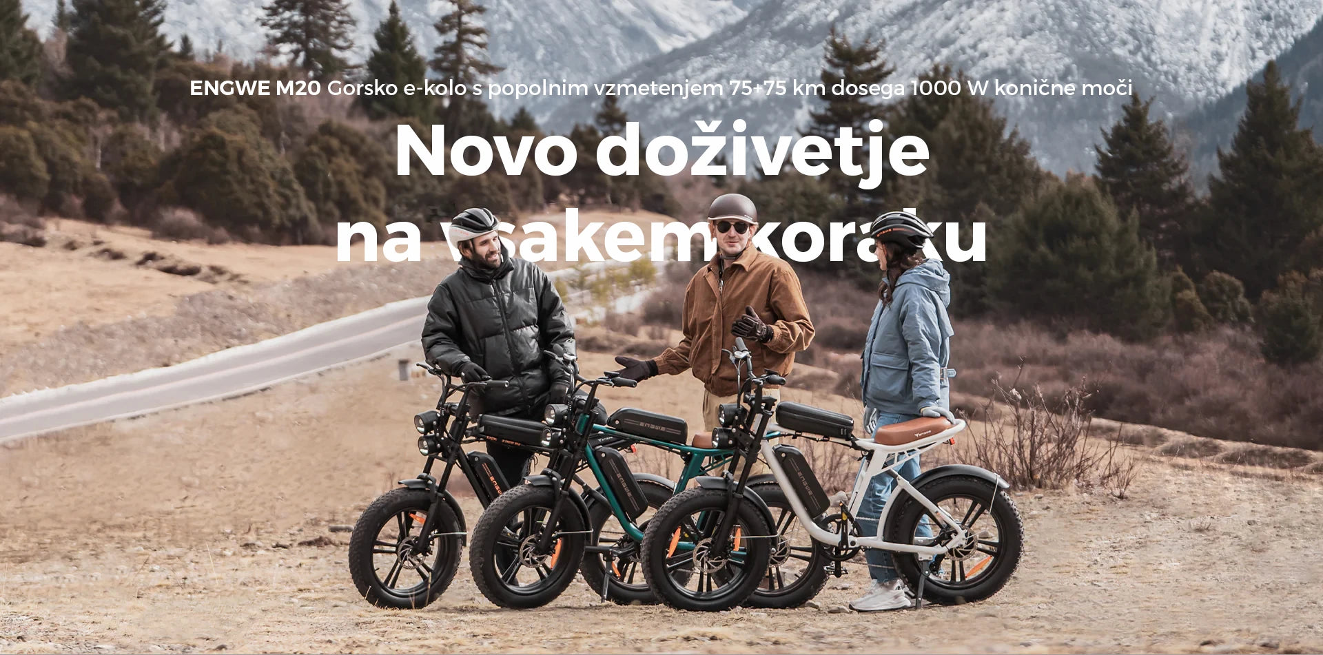 ENGWE M20 je zmogljivo električno kolo z debelimi pnevmatikami, zasnovano za dolge avanture. Opremljeno z 750W motorjem in dvojnim vzmetenjem. Kolo ima dve 48V litij-ionske baterije za daljši doseg in robusten aluminijast okvir. Idealno za mestne vožnje in makadamske poti.