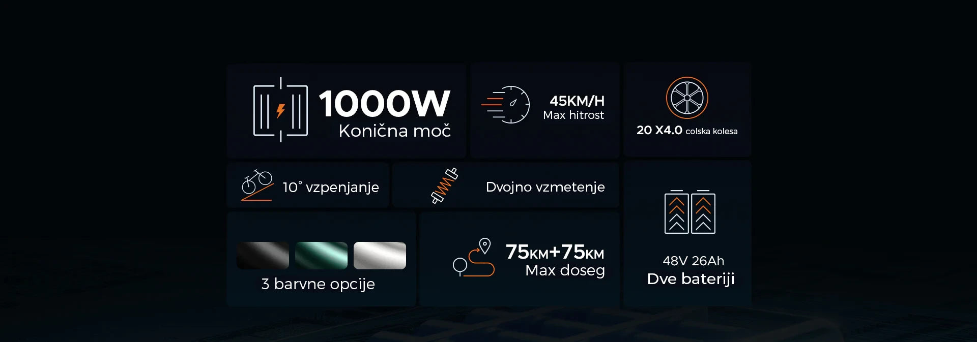 750W motor, 75 km + 75 km dosega (opcijsko), dvojno vzmetenje, izgled motorja