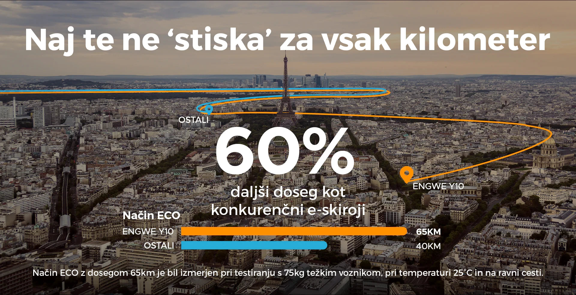 Kot pri vseh proizvajalcih so tudi pri Engwe dosegi testirani v idealnih pogojih. Po naših testih v realnih razmerah na slovenskih cestah je doseg približno 25–30 % nižji od uradno navedenega.
